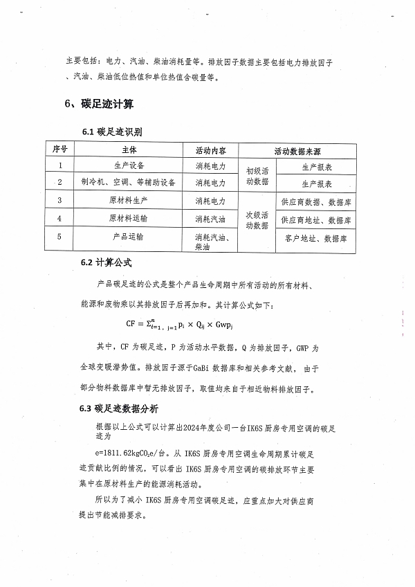 2024年度iK6S廚房專用空調(diào)產(chǎn)品碳足跡報(bào)告